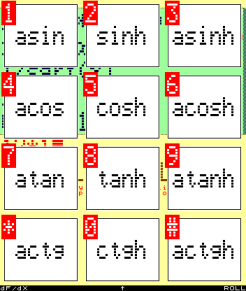 button opens a menu of rarely used functions (arcsine, arccosine,